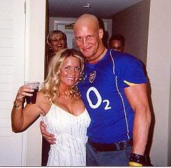 Nice collection of shirts bro... Man, I wish I could go to the world cup. My parents will be going to the final, damn them. I was just in England but unfortunately didn't get to go to a game. My parents own a house in a town just near Manchester, so because of that I go for Manchester City (no one who lives in Manchester actually goes for Manchester United). Next time I'm back in England I'll go see City play, for sure. As to the violence thing, real football (Australian Rules footy... no not rugby) just started back up again this last weekend, and it's nice to see people being hit by a guy they never saw coming, writh on the ground for awhile, then get back up for awhile and keep playing. In soccer, they get barely touched and they roll around like bitches, go off on a stretcher, and then come back on 2 minutes later as though nothing happened. That is the one annoying thing about soccer, especially since most English people are incredibly tough, just look at the soccer riots... and yet the players are so soft. As an Australian, it's tough to watch. but yeah, world cup, should be good. ps. Christian, who is that chick with the watermellon sized cans?