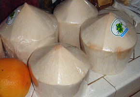 Get a coconut. One that looks like this. http://www.markusrothkranz.com/Resources/thai_coconuts.jpgLop the top off. Insert straw! And afterwards, scoop out the inside 'meat' with a metal spoon. Or you can drink water and squeeze fruit into it. Btw is coffee ok for diabetics? No sugar, of course. Just curious.