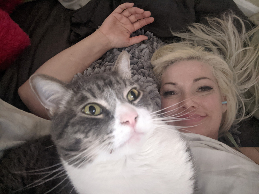 Ava now lives alone in Anaheim, CA. She is single and has now children. However, she has two cats named Wolverine and Salem. Here she is with Wolverine: