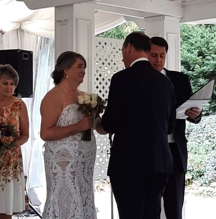 Bit of a grimace there. Might be nervous with the church folk all around.